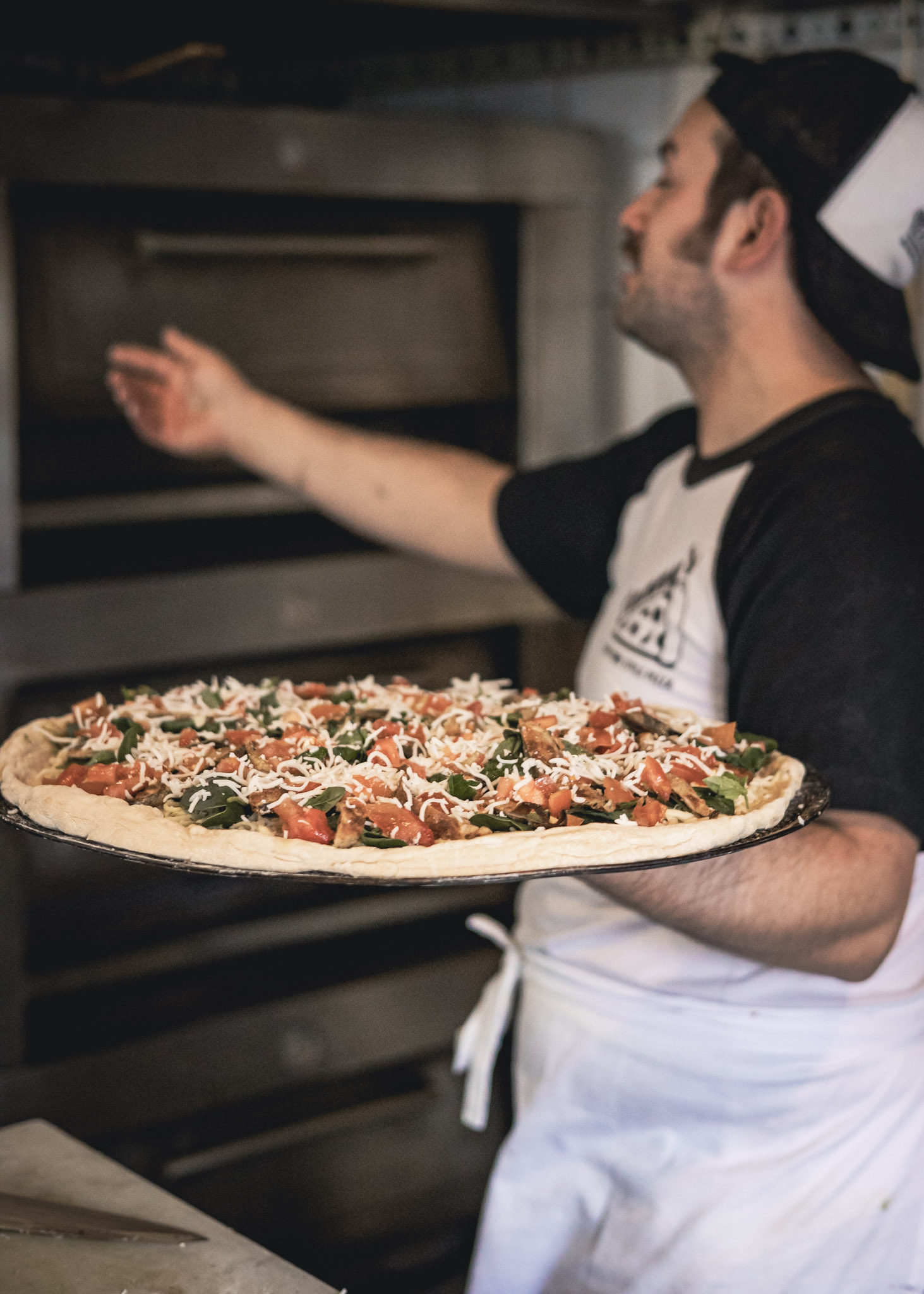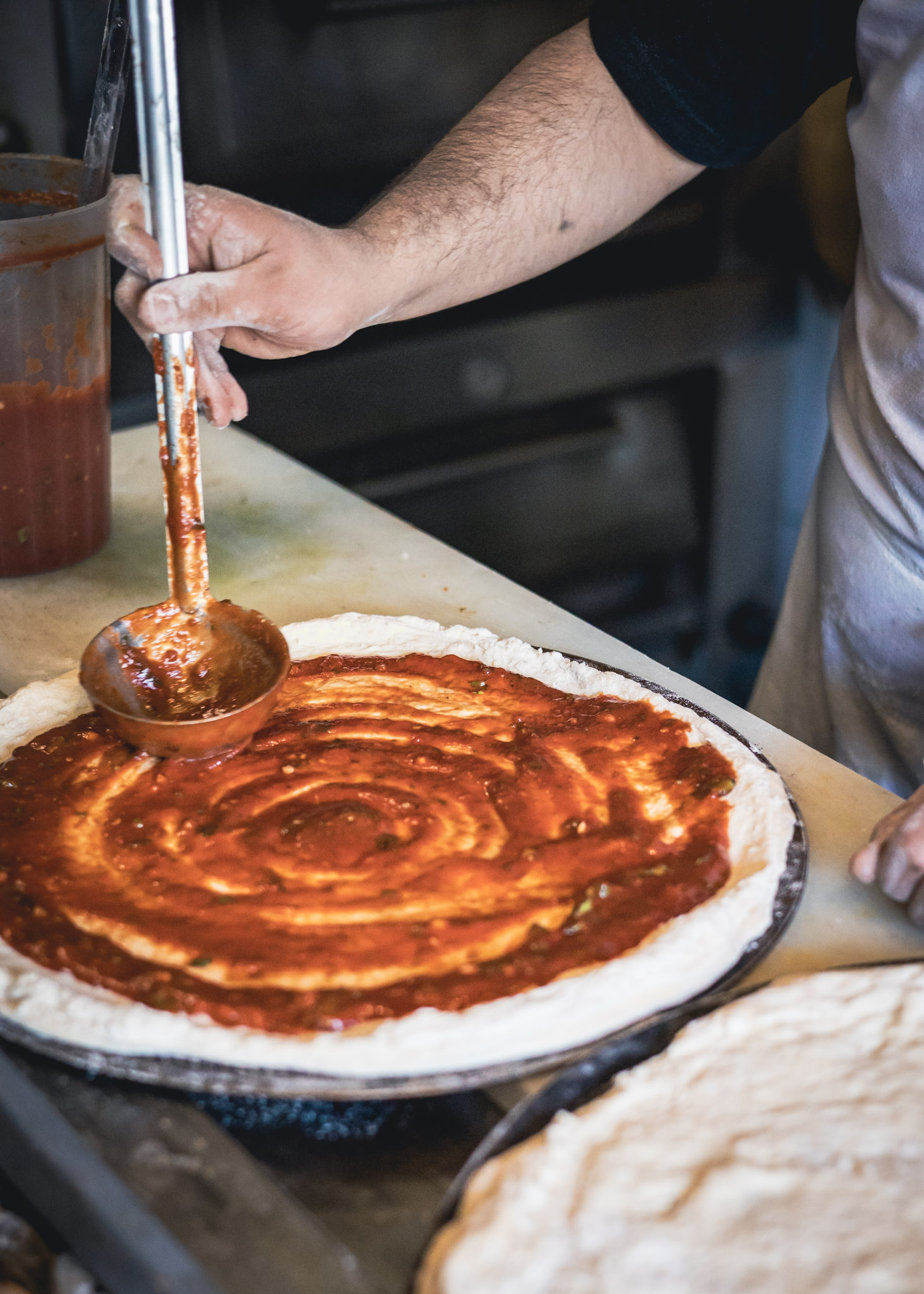 En agosto del 2021, tuve la suerte de visitar esta pizzería un día sabado a la hora del almuerzo y aprovechar de mirar como se arman muchas pizzas al mismo tiempo.