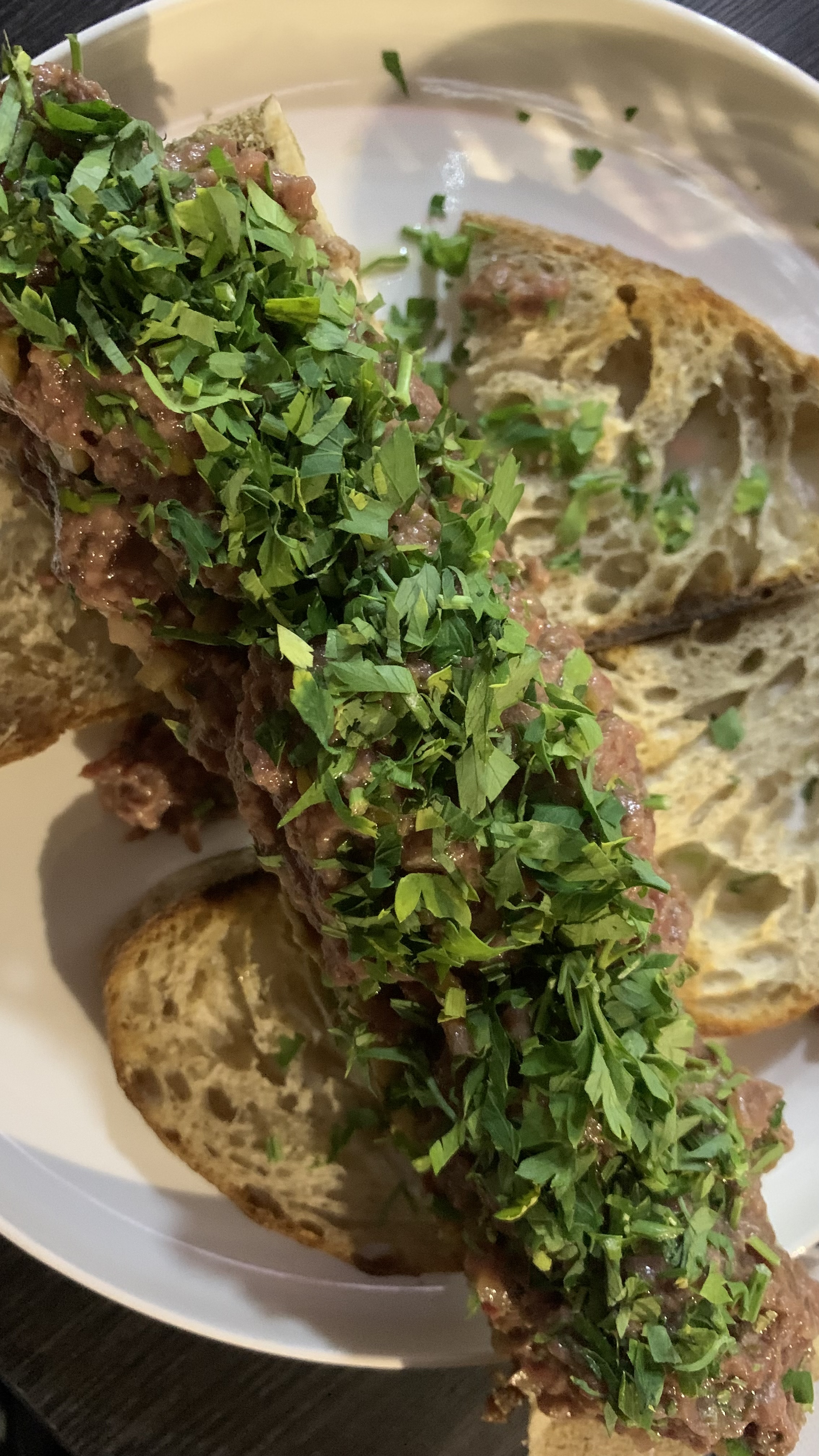 Mi plato favorito fue el crudo que va con un tuétano, realmente sabroso y «mucho sabor». Pero también, probé la malaya que estaba increíble, hasta un perrito las probó y se quedó «aguachado» al lado mío.