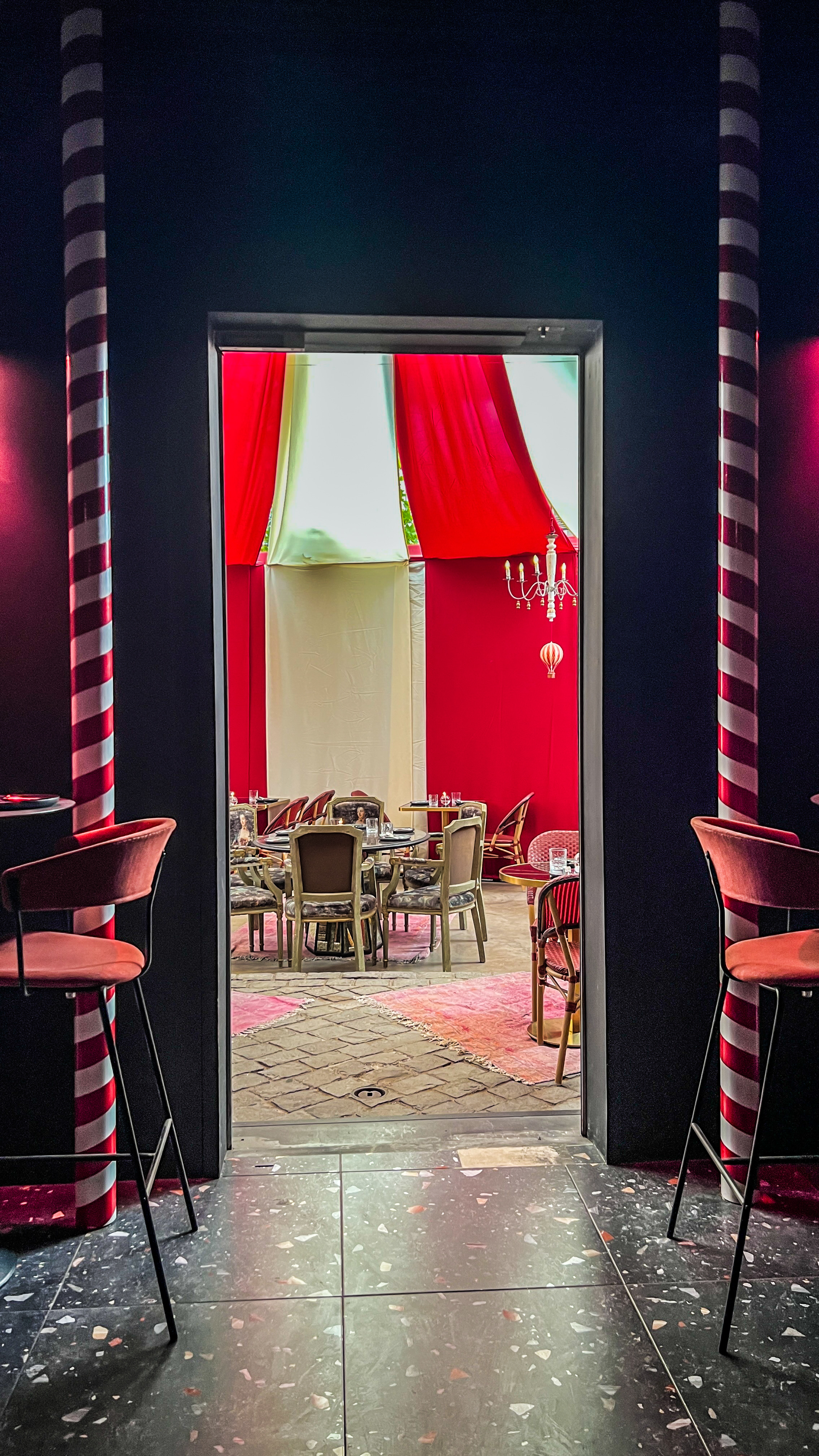 Llegamos y claro, absolutamente es otra cosa, todo muy bien ambientado, hay algunos detalles de luz, pero que le afecta más a la gente que trabaja ahí que a los clientes. La música, el espacio, los colores, está todo «de mi gusto». Nos sentamos y empezó a llegar mucha gente, teníamos a un grupo de 8 personas al lado, argentinos, franceses, chilenos. Llegaba gente con unos vestidos de gala, peinados de peluquería, parejas que se ven en «la teli» como vestidos para matrimonio (debe ser por la época quizás, de titulaciones, eventos, etc.) Lo que sí es importante es que la edad mínima para reservar es de 30 años, no pueden ingresar mascotas, no pueden ingresar menores de 18 años.