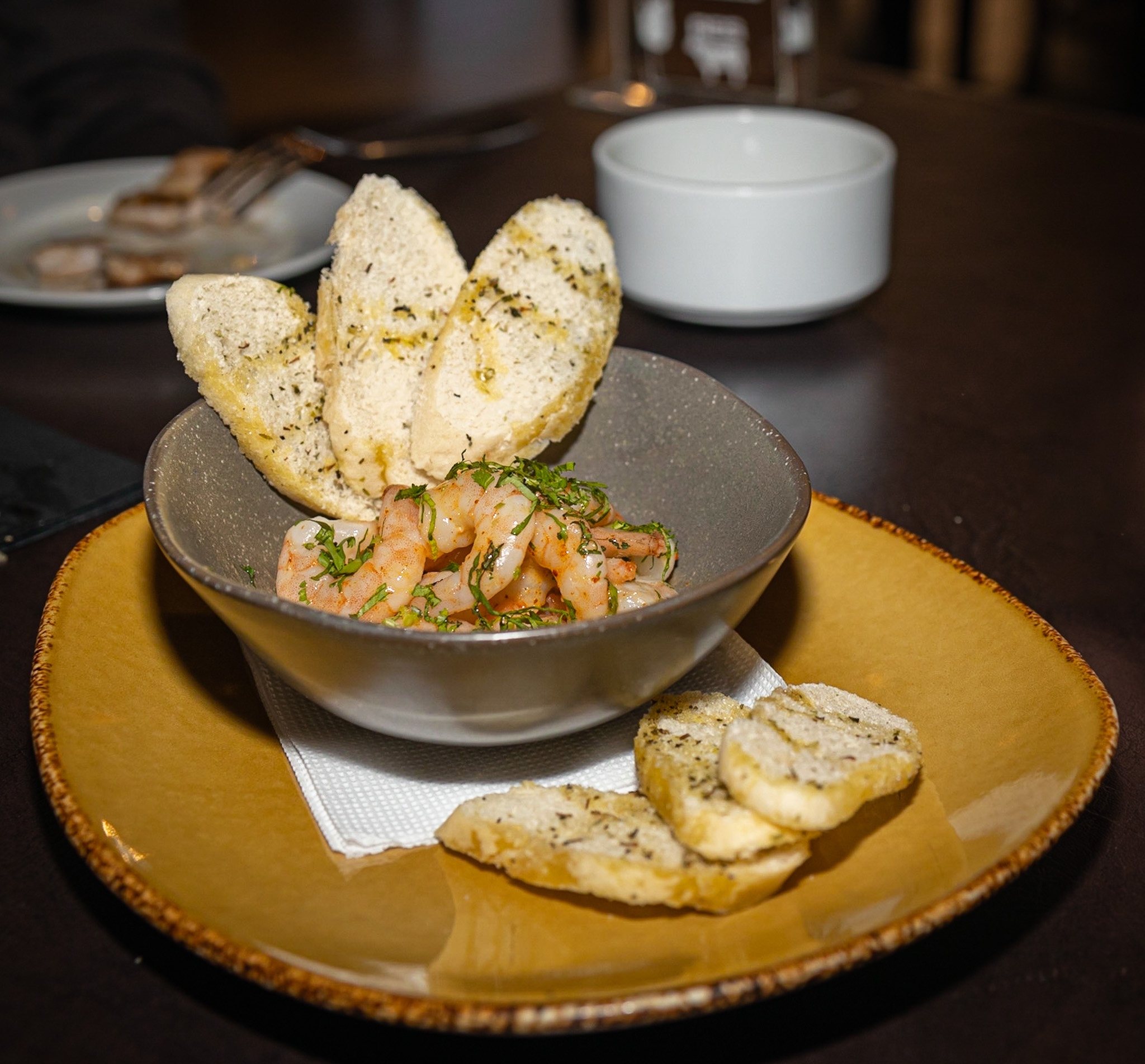 Pedimos una malaya, unos camarones al pil pil, un TBone, y sugerencias de Mr Wagyu, con arroz de angostura, puré trufado, pastelera, ensalada a la chilena, unas papitas y cuanta cosa que ya no recuerdo.
