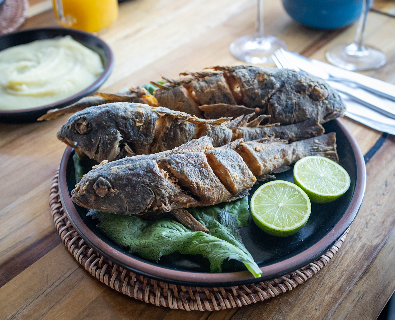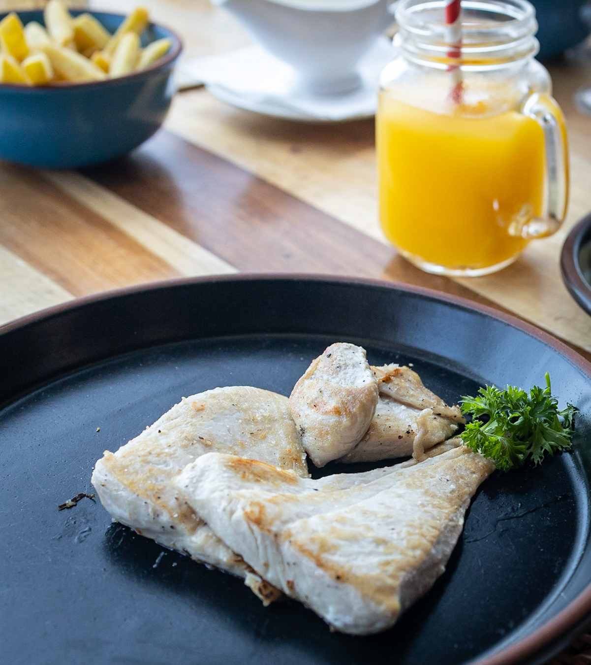 Y cada uno pidió un pescado para comer, a mi Marco me ofreció la “cabrilla”, no la había probado nunca, y los demás pidieron reineta a la plancha y lenguado, con unas papas fritas y puré.