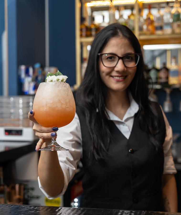 La que comanda la barra es Yeni, con un gran curriculum en coctelería y también está Yelenis a quien conocí en Caoba Bar. En mi visita, faltó ver a Cesar que es el tercero en la barra.