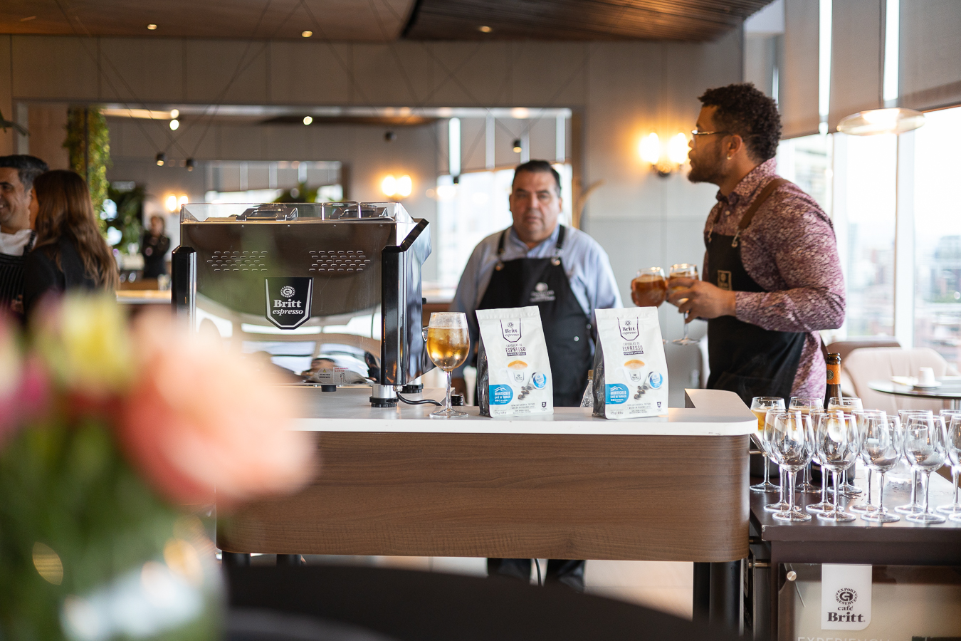 Para los asistentes se ofreció un cóctel con gin, espresso (con café britt), espumante y tónica. También estuvieron los de la Destilería Garden con su Gin Erva, en donde se hizo una degustación y presentación del espirituoso para los que no lo conocían y también se hicieron los famosos gin tonic.