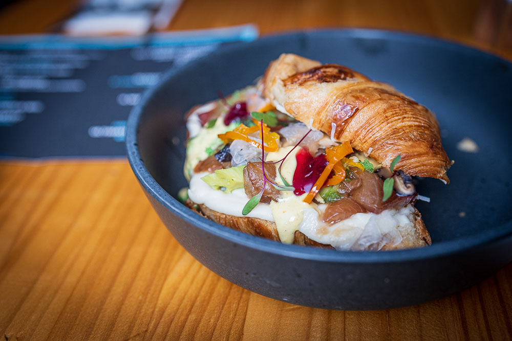 Venía después el Croissant Nikkei de Juan Ozaki: Contenía bechamel, coliflor, uzusukuri de hiramasa, gel de chicha morada, aji amarillo con nabo, pedazos de shitake, queso pecorino, miel trufada y otros… Acá si que si estaba esa mezcla de varios sabores que ya no puedes describir, por un lado parecia un pancito dulce, a la otra mascada un salado marino, después todo mezclado… uffff… y bien contundente todo, para comérselo con las manos. Pero, como tenía que sacar fotos, preferí cuidar mi cámara y ocupar tenedor.