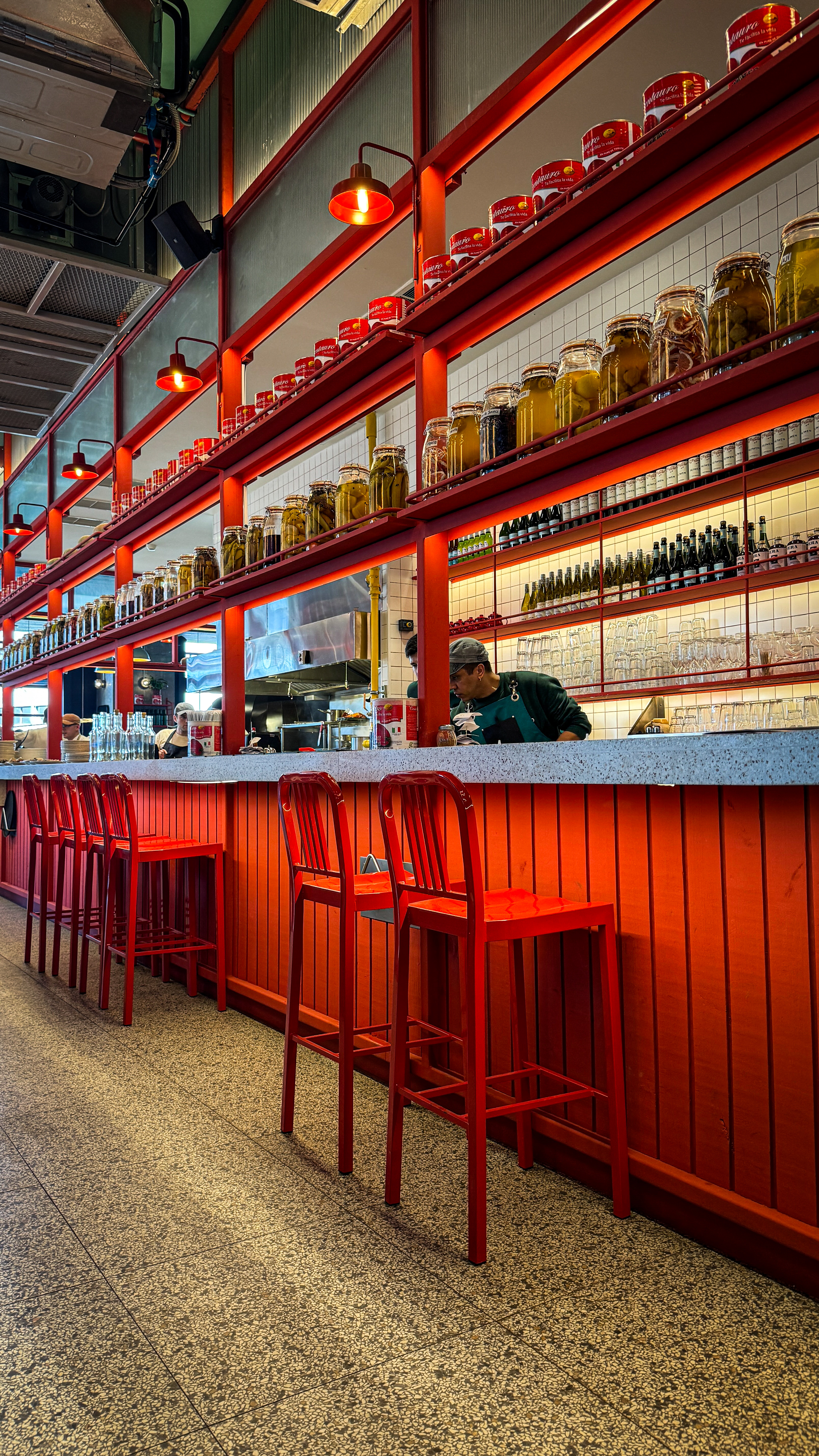 Me fui con otra idea, así que si van al MUT, aprovechen de pasar al lugar. Música entretenida (pero la acústica no acompaña mucho), un lugar con harta luz, harta gente, puedes ver todo lo que pasa en la línea de cocina y bar; hay unas mesas en la terraza mirando hacia Apoquindo, quizás ese spot va a estar buenísimo en octubre con unos mócteles o cócteles cuando ya tengan la patente.