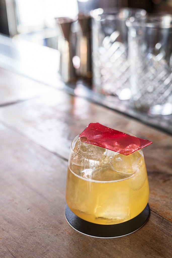 El Pipe me presentó «La Plaza«, un cóctel en base de whisky que se mezcla con jarabe de palomitas de maíz, licor de huesillo, manzana roja y una lamina de caramelo como garnish, muy manzana confitada de la plaza. Su valor 💲: 7.600 / Su valor ❤️: me robó el corazón. Al cerrar los ojos te transportas a la plaza, tiene un aroma dulce, al típico de manzana confitada. Y al probarlo tiene la fuerza del whisky, el dulzor suave de las palomitas y luego llega esa manzana jugosa, junto con el huesillo refrescante. El garnish es dulce, no pegote ni hostigoso y te recuerda a los productos confitados. Este es un cóctel más bien cálido y el hielo lo deja perfecto para esta temporada primavera/verano. 100% para el paladar de los chilenos.