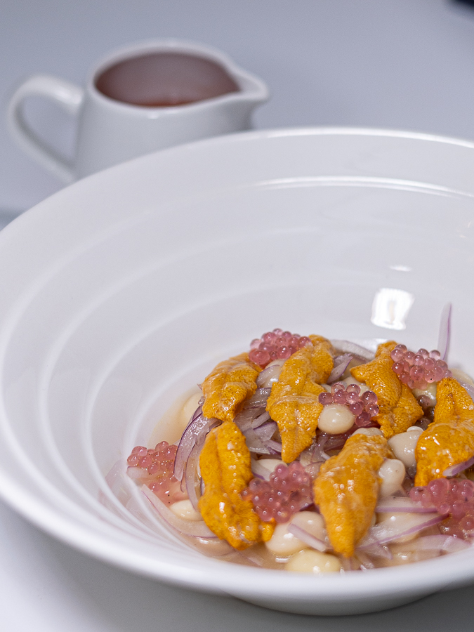 Pude aprovechar de probar varios platos, pero el que me voló la cabeza fue el de los porotos con erizo, que cosa más buena. Llevaba una crema de piure encima y un jugo de tomate, todo lo que espero de un plato veraniego. Ojalá comerlo todos los días ya que sigue siendo mi obsesión.