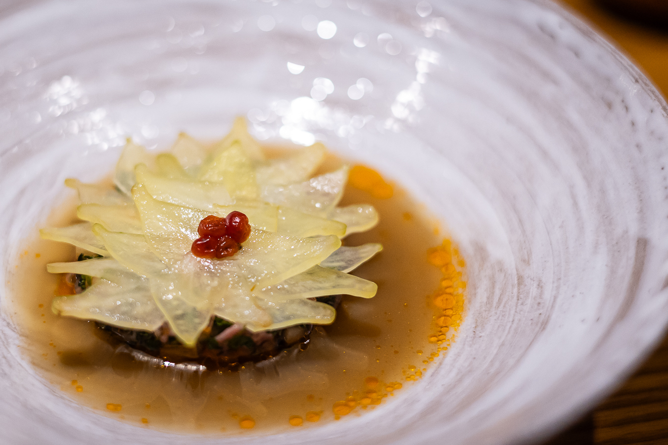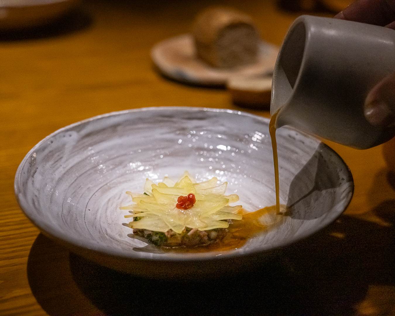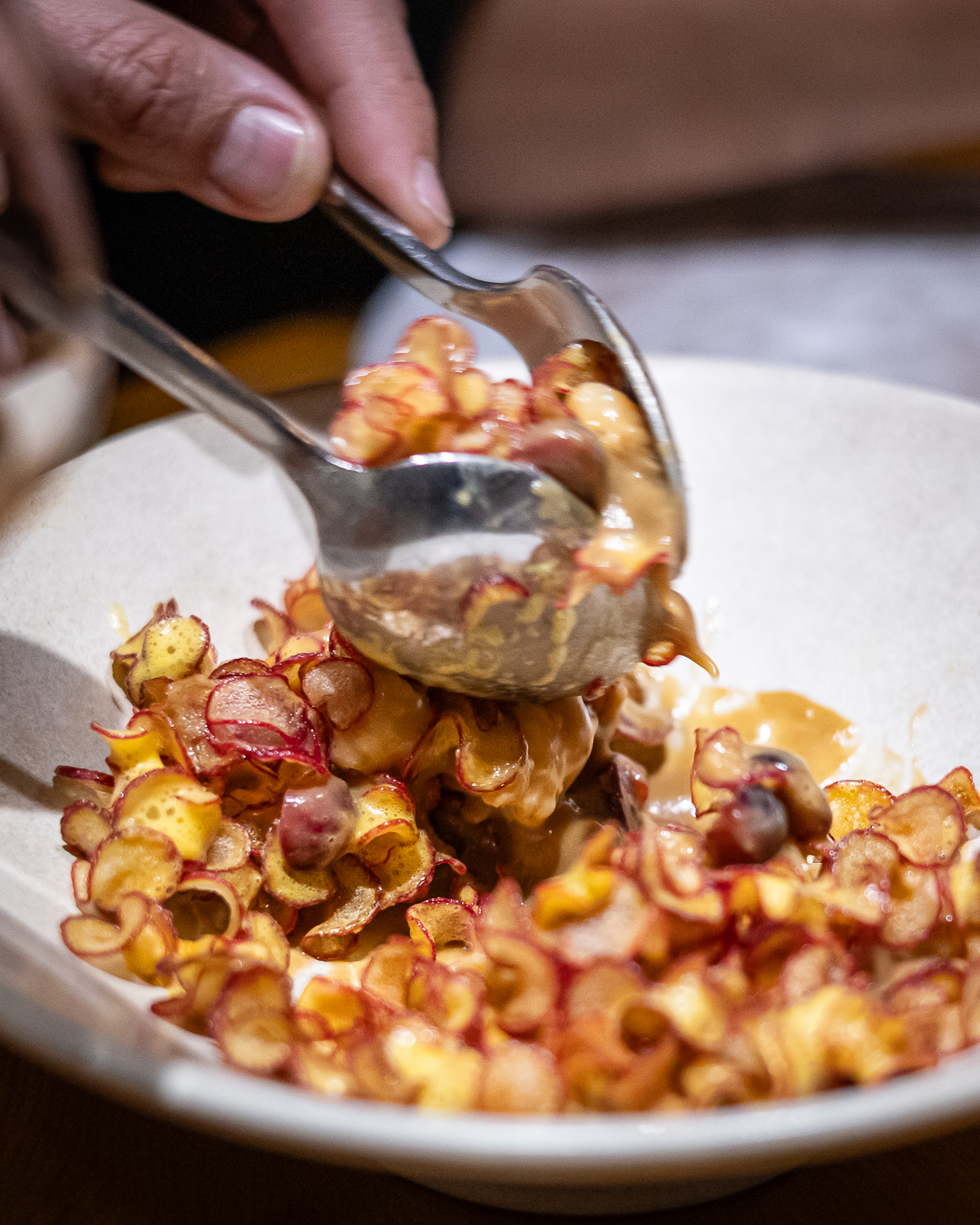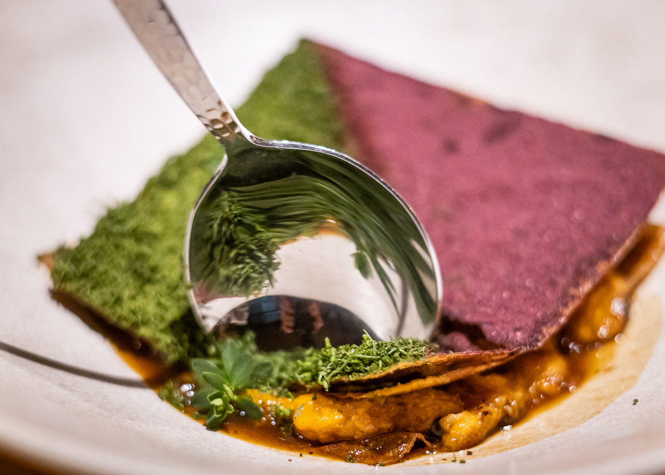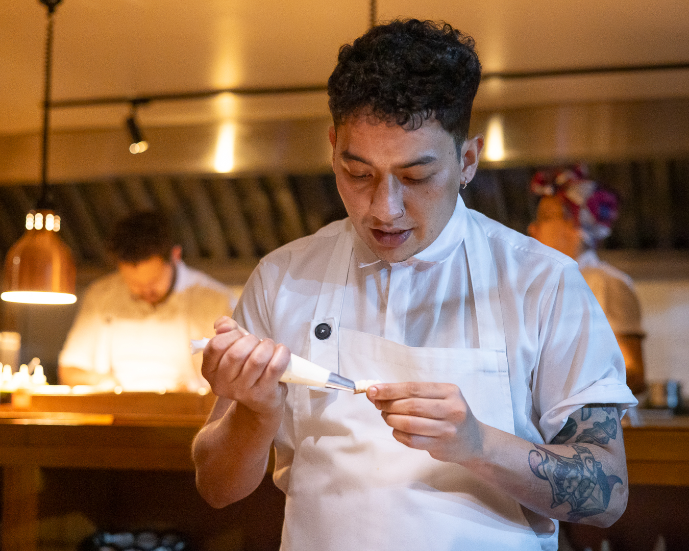 Entendí muy bien que para armar Afluente hubo años de investigación bien detallada sobre los productos que tienen los páramos (ecosistema de montaña proveedor de agua dulce), así que todo el menú, el de degustación y a la carta, tiene que ver con animales, pescados, plantas y otros relacionados a los afluentes de Colombia. La verdad es que todo lo que nos contaba, calzaba muy bien con lo presentado, algo minucioso, bien estudiado, en contacto con los pequeños productores y con mucho detalle.