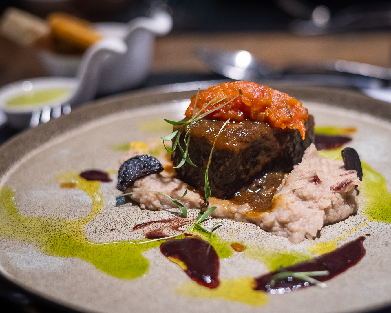 - Principal 2: Asado de Tira – Castañas – Tomate – Maqui – Ajo Caramelizado / Malbec de la Viña Maquis