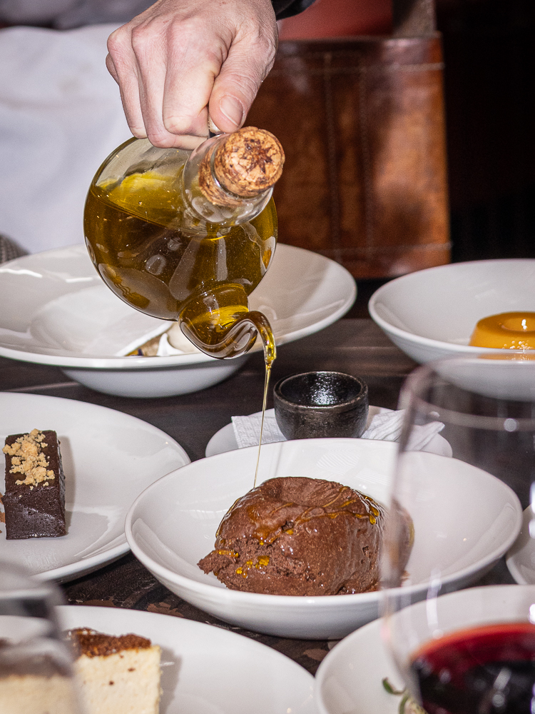 Pero también había quindim, helado de lúcuma y otros más, mousse de chocolate con aceite de oliva y sal, tarta de queso con dulce de membrillo, volcán de pistacho y otros más.