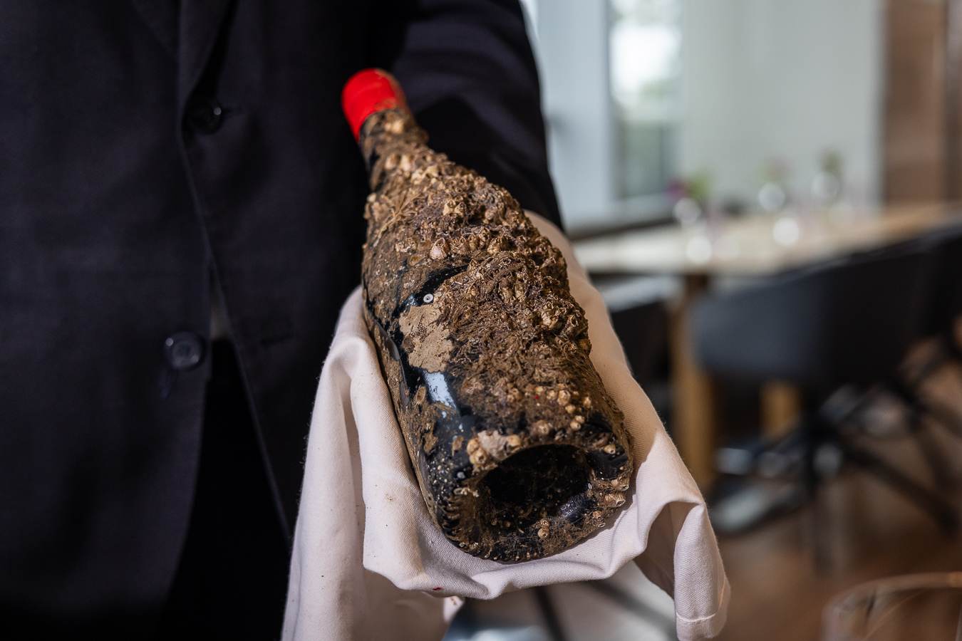 Y un Semillón de Arcana que estuvo guardado en el mar por más de 6 meses para probarlo con una reineta asada con salsa meuniere (mantequilla, perejil y limón) y emulsión de papas con alcaparras fritas acompañado de algunas verduras asadas.