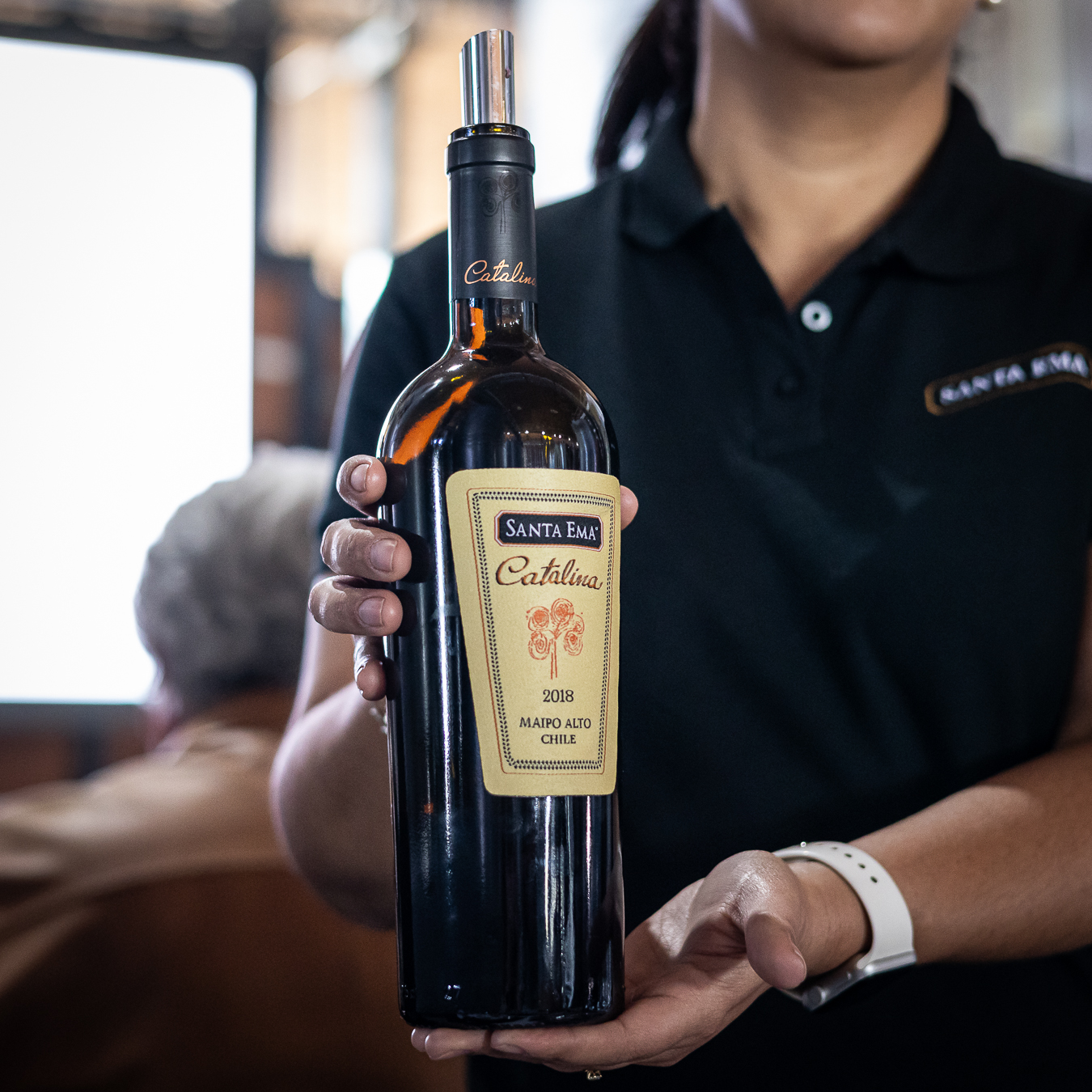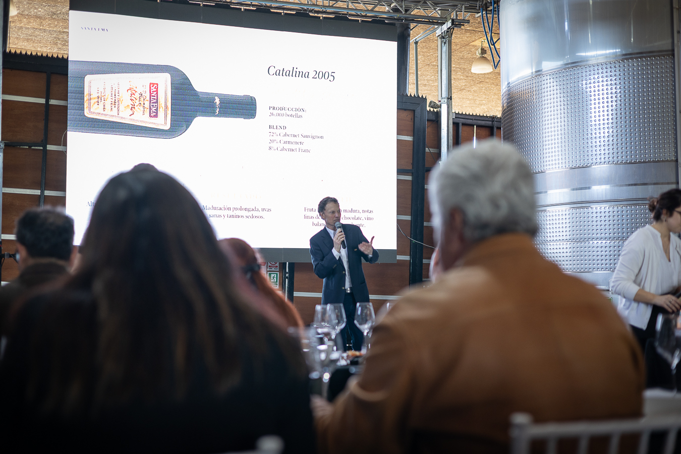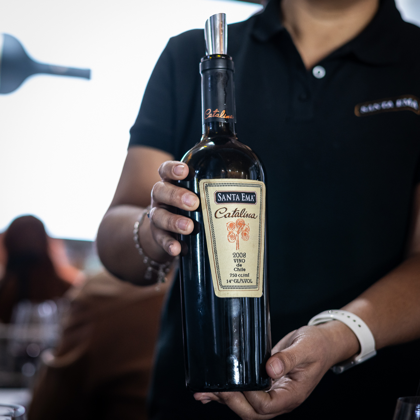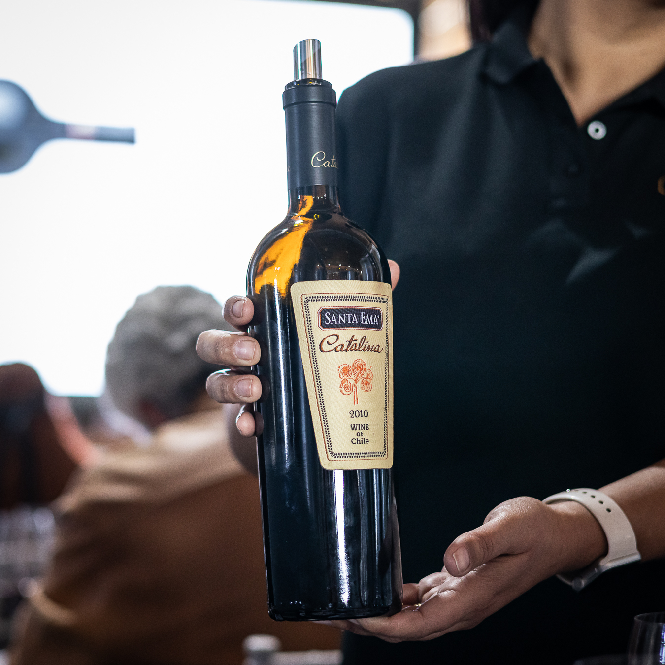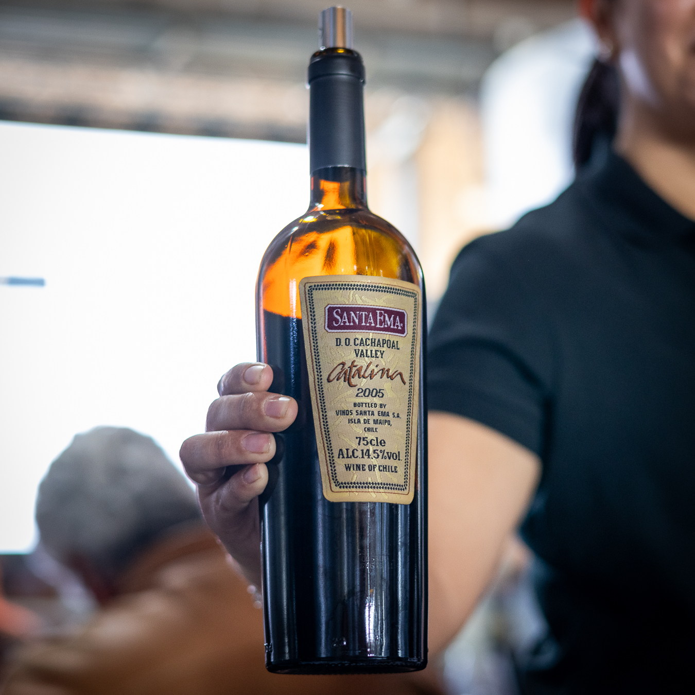 Hicimos una pequeña caminata hasta las oficinas y bodegas de la Viña, para la realización de la cata vertical de «Catalina». Rossana Pavone, hija de Catalina Moreno fue la que realizó la introducción sobre «Catalina» el blend con las tres C: Cabernet Sauvignon, Carmenere y Cabernet Franc en donde originalmente fue una mezcla bordolesa clásica (Cabernet Sauvignon, Merlot y Cabernet Franc). Sin embargo, en 1999, con el redescubrimiento del Carménère en Chile, Santa Ema reemplazó el Merlot para llegar a estas tres C.