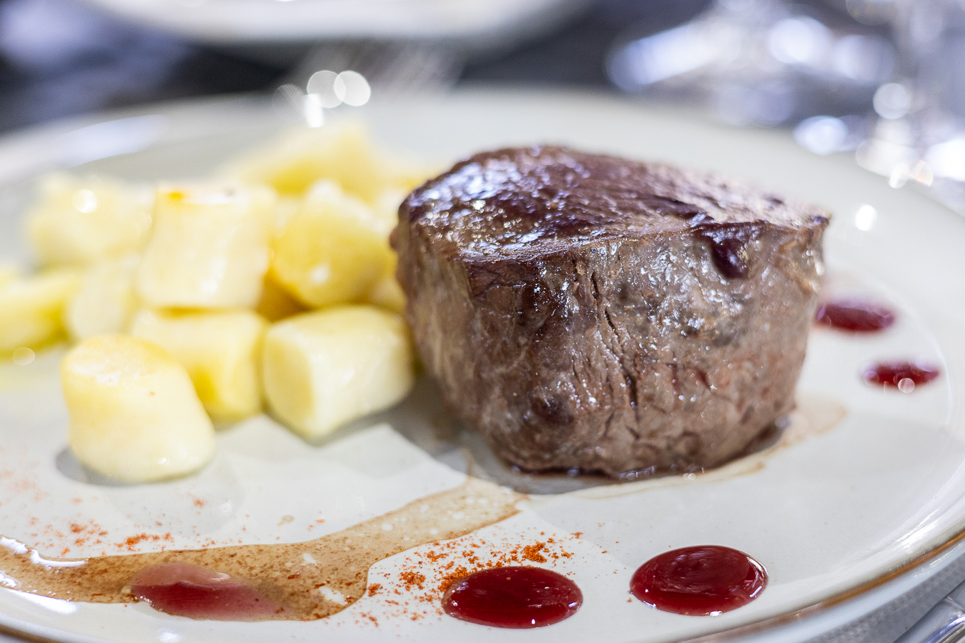 Luego volvimos a Casa Ema para disfrutar de un buen almuerzo con todos los invitados, probé un Pastel de Jaiba con Amplus Chardonnay 2024, un Filete al vino tinto con Ñoquis a la mantequilla gratinados junto con Catalina 2021 y varios postres con un Tardio Late Harvest 2022.