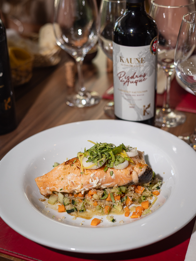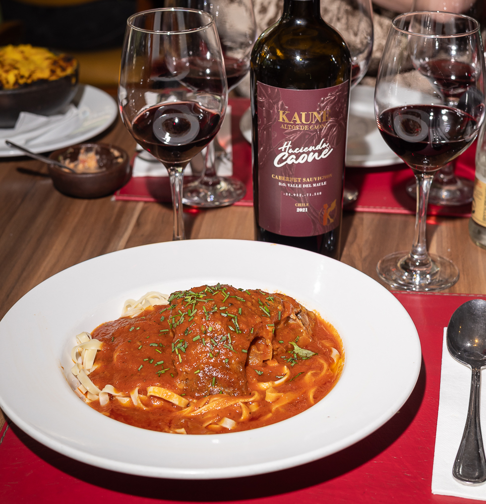 Ya con esa introducción, era lógico que teníamos que probar algún clásico como el pastel de choclo o las sopaipillas con pebre. Y así fue como probamos los 3 tipos de cabernet sauvignon de Kaune para ir reconociendo estilo calza con qué plato.
